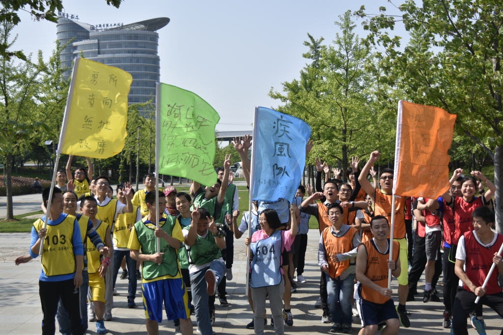 In the afternoon of April 28, the second round of healthy running competition of "You and I are of one mind, together with love" series activities was launched in Shanghai Qingpu Qinyuan Lake Greenland Park. The running army composed of more than 100 members from Shanghai headquarters came to the site, with flag in the hand of participants. Distinguished by color, it was divided into 5 teams. Five-color flags swaying in the wind, highlighted vigor and vitality of employees in Shuanglin.