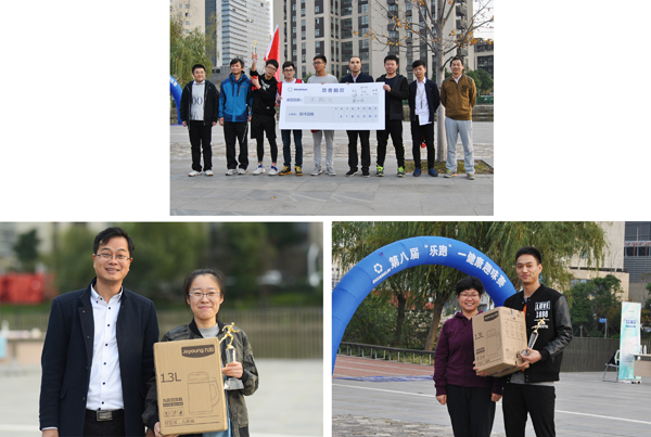 最后,乐跑队最快完成了比赛,获得了团队奖,IT系统运维组的王钟奎获得了男子一等奖,饰件采购部的孙瞳获得了女子一等奖,由股份公司总经理、总裁助理、副总经理分别为获奖人员颁奖。