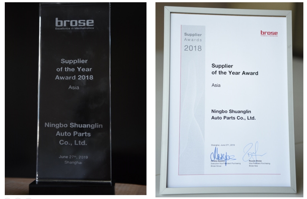 日前双林股份应邀出席Brose年度供应商颁奖典礼,被授予“Brose年度最佳供应商奖”。该奖项每两年颁发一次,是Brose用以表彰合作伙伴的最重量级奖项,代表着Brose对合作伙伴产品质量、成本、交付及创新等方面的全方位高度认可。
