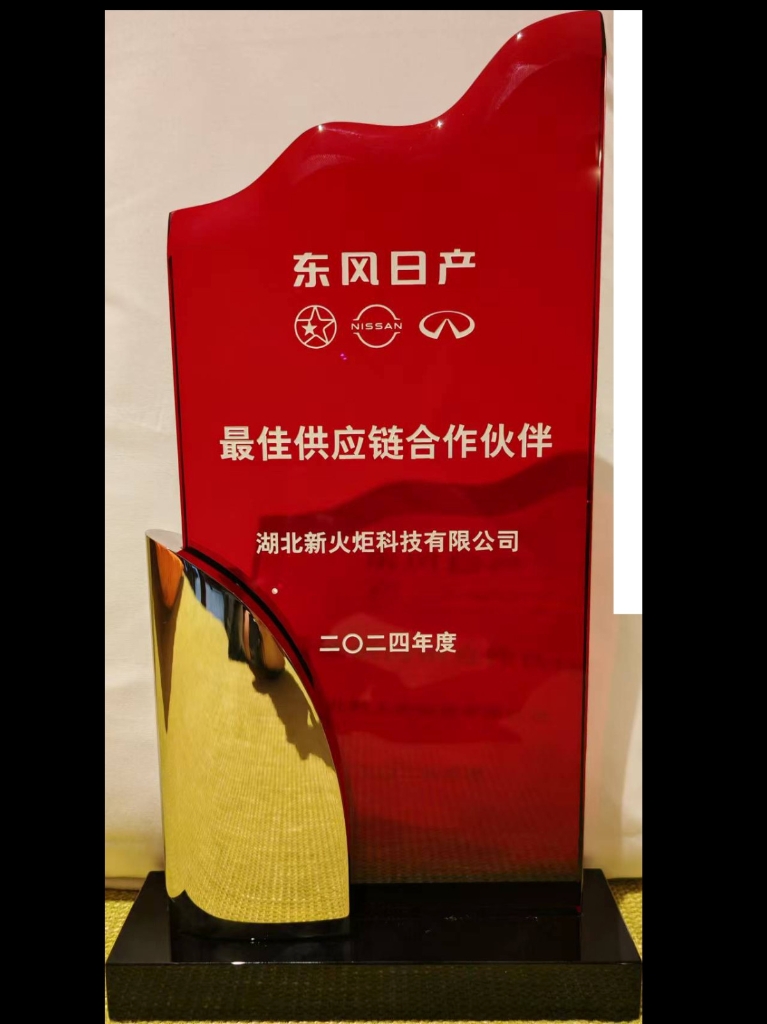 会上,双林新火炬凭借与东风日产在战略合作中做出的突出贡献,以及2024年度在品质竞争力(Q)、成本竞争力(C)、研发能力(D)、交货保障能力(D)和服务配合能力(S)等方面取得的优异成绩,被东风日产评选为2024年度“最佳供应链合作伙伴”(优秀供应商)。